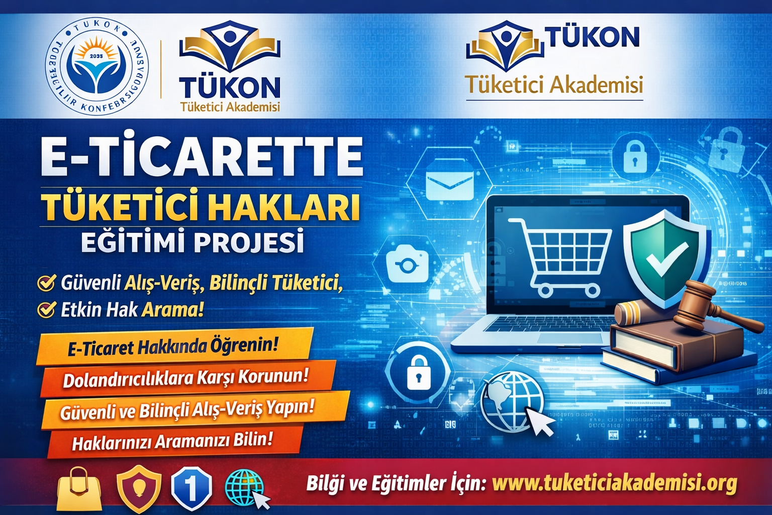 E-Ticarette Tüketici Hakları Eğitimi Projesi, dijitalleşen ticaret dünyasında tüketicilerin bilinçli, güvenli ve haklarının farkında bireyler olarak hareket etmelerini sağlamak amacıyla geliştirilmiştir.